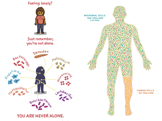 Microorganisms are constantly associated with our body surfaces in a dynamic equilibrium. An average human contains about 30 trillion cells; the same individual may contain almost 100 trillion microbes. The bacteria and other microbes in our body outnumber our cells by about three to one.