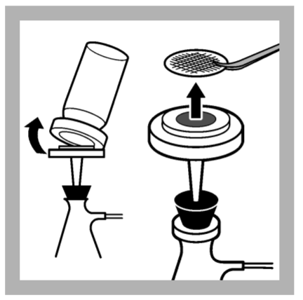 - Carefully remove a sterile membrane filter from its package, holding it only by its edge.