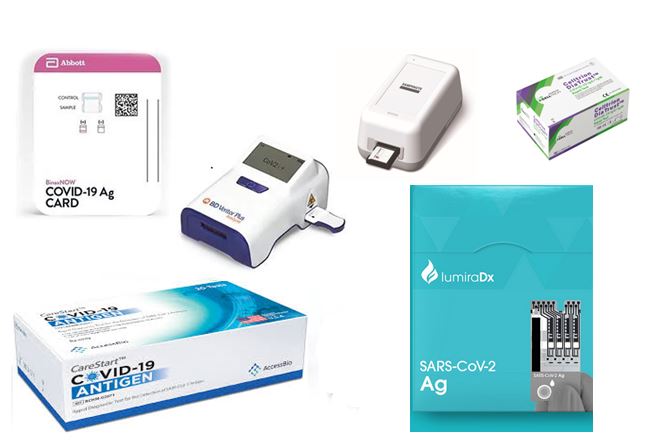 | BinaxNOW COVID-19 Ag Card | Abbott Diagnostics Scarborough, Inc | Lateral flow immunoassay | Nucleocapsid protein antigen |