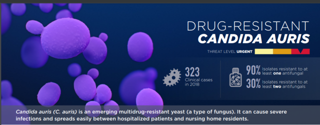 C. auris is an emerging drug-resistant fungus that presents a serious global health threat. According to CDC, it is concerned about C. auris for three main reasons: