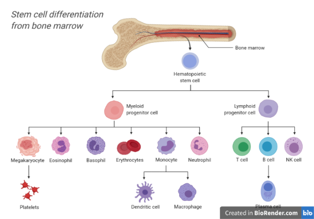 All these specialized cells of the immune system arise from bone marrow’s hematopoietic stem cells.