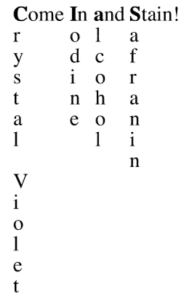 Gram staining technique requires simultaneous use of chemical reagents for a fixed period followed by washing; Primary stain(crystal violet), Mordant(iodine), Decolorizer(ethanol or acid-alcohol), and Counterstain****(safranin or dilute carbol-fuchsin).